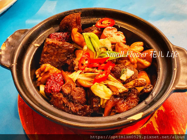 台式正宗北港麻油三杯綜合猴頭菇,猴頭菇、素米血、杏鮑菇等加入北港麻油拌吵,香氣十足,超開胃的!