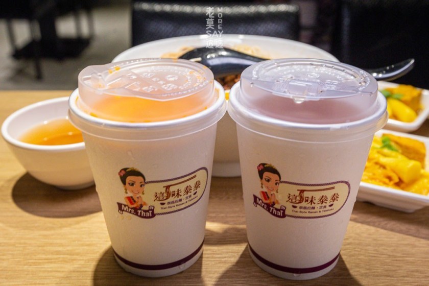 今天加購的飲料分別是泰式奶茶和果香冰茶。吃泰式料理怎麼能錯過最道地的泰式奶茶?橘通通的泰奶茶香味十足,濃郁滑順。果香冰茶則是以芒果為基底,清爽解膩,炎炎夏日喝上一杯再適合不過了!