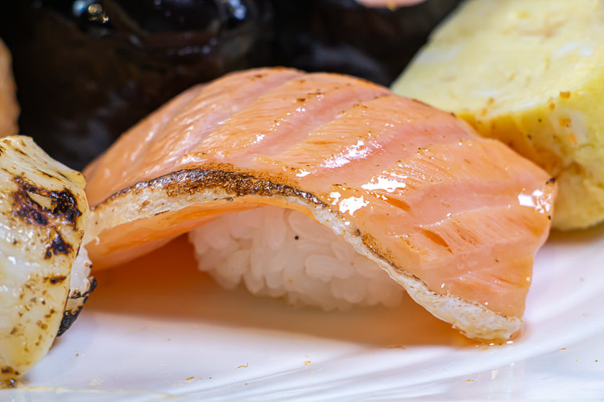 鮭魚魚腹更是肥美香甜!沾點醬油或現磨山葵就足以讓人嘴角上揚~