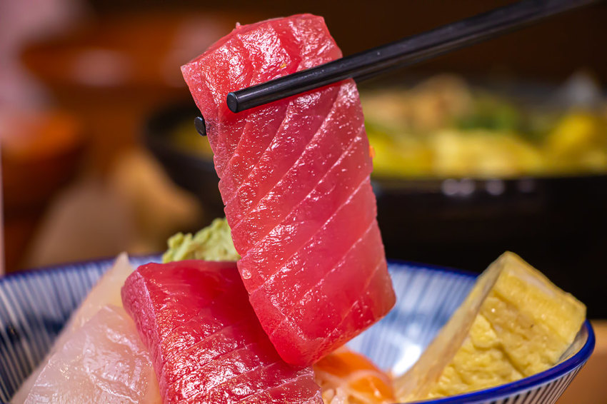 鮪魚魚腹部份色澤明亮,吃得到魚肉的鮮甜味。
