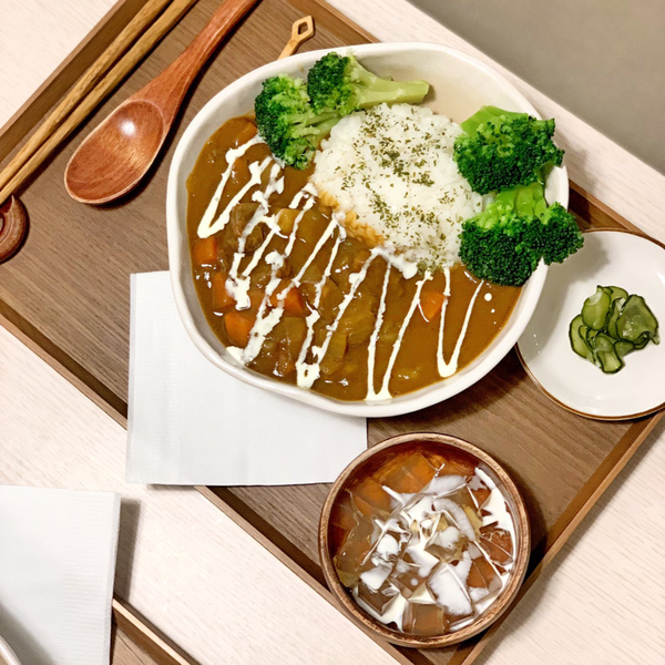 這道咖哩牛肉飯讓我很驚艷~微辣的口味的日式咖哩濃郁不膩口,淋上少許鮮奶油更增添香氣與口感