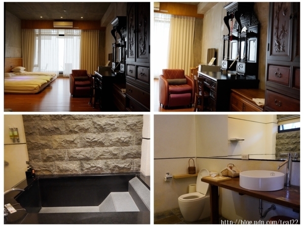 房間內附小廚房,衛浴間有泡湯池、乾濕分離浴室、三溫暖烤箱。