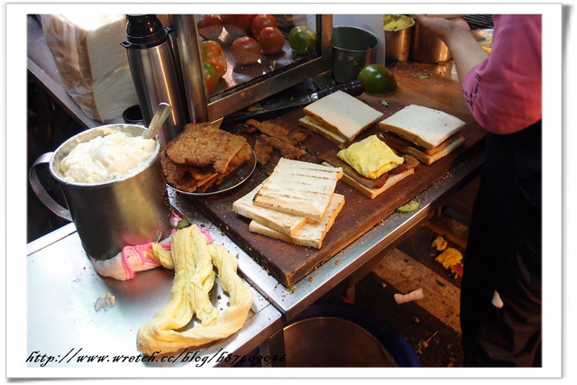 我猜那煎蛋應該是用豬油煎的吧? 看著容易沾鍋的蛋隨著店員移動鍋的手滑來滑去就知道裡面放多少油了XD