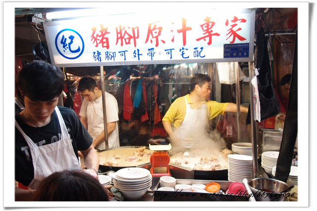 剛好走到紀豬腳原汁專家 看著老闆不斷在攤上那兩鍋滾著豬腳的大鍋子中添料 熱騰騰超誘人