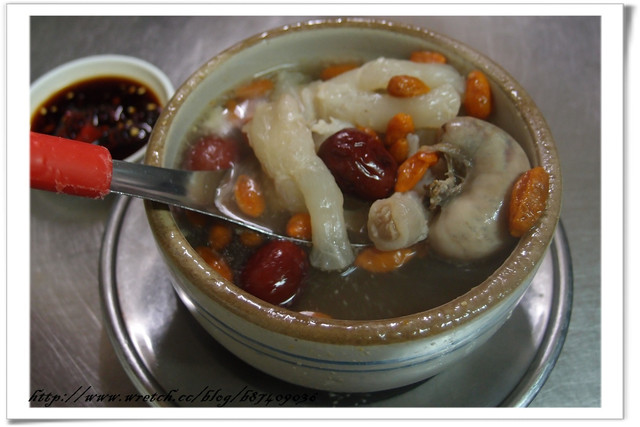 腳筋湯帶點中藥香氣 清甜好喝!原猜想是不是摻了味精 不過喝完也不會口乾舌燥應該是紅棗或枸杞熬出的甜味