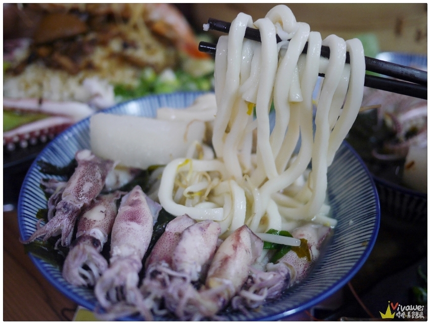 ▲這小卷湯麵加了滿滿的昆布和豆芽菜,湯頭很鮮甜~裡面有10隻新鮮好吃的小卷,用料很實在~小卷保留了大海的鮮味,口感Q彈脆甜!