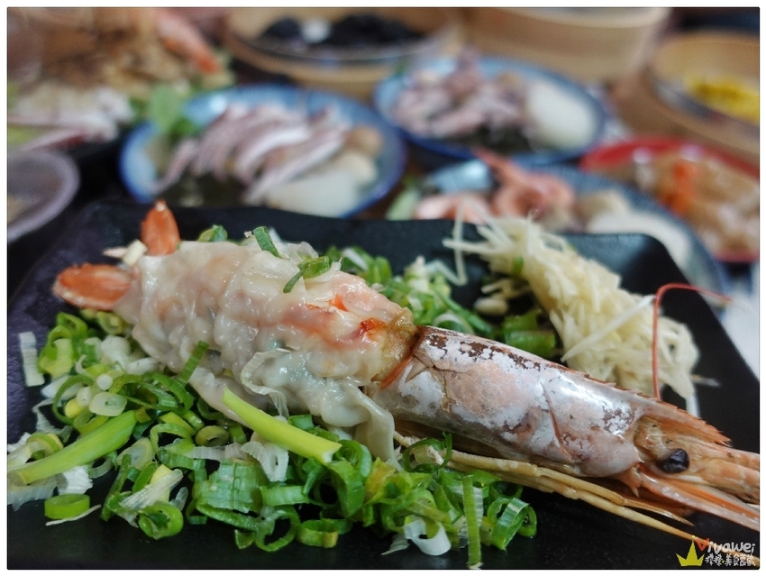 ▲天使紅蝦蒸餃選用L1等級的天使紅蝦,跟天使紅蝦包在一起的後腿豬肉內餡,餡料口感紮實!一旁搭配了薑絲和蔥花,可以單吃或是沾醬搭配,是道創意滿滿的蒸餃口味。