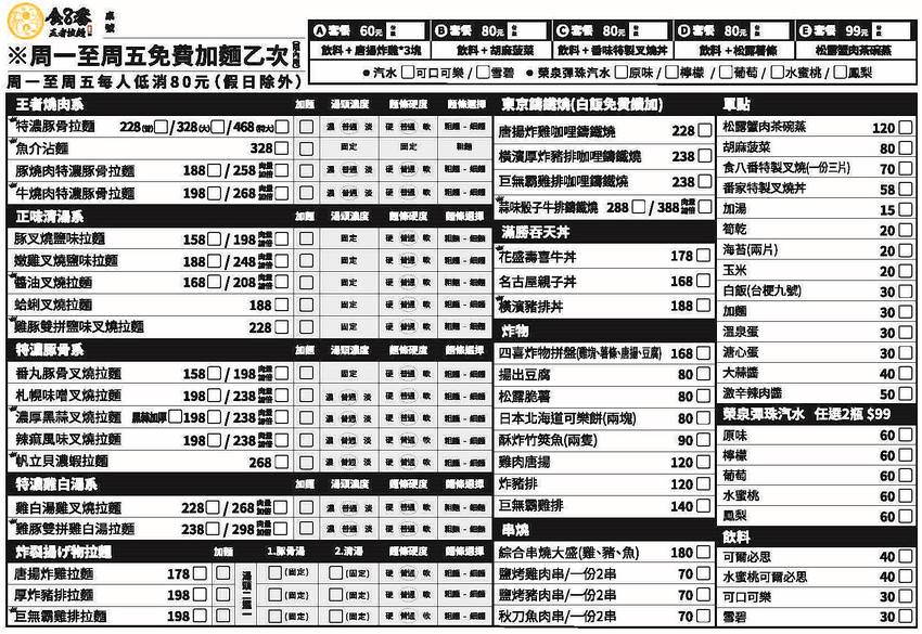 週一至週五免費加麵已次