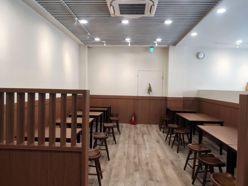 一進門是簡約的木造裝潢,左邊是櫃台,右邊是自助區,旁邊貼心有長椅可供外帶或等位客人稍做休息。