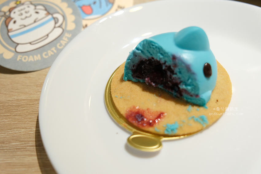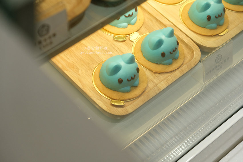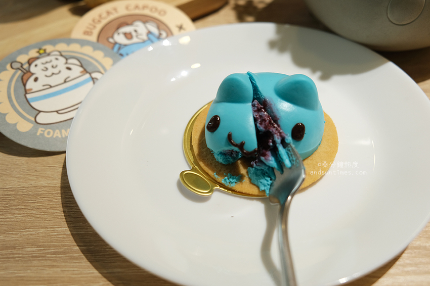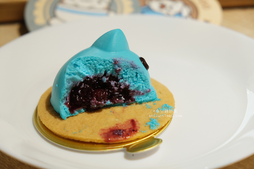 接下來給今日最可愛的「咖波莓果起司蛋糕」一個特寫,藍藍的身軀是起司蛋糕,貓貓蟲小手手放在胸前可愛的模樣看起來更楚楚可愛欠吃了!