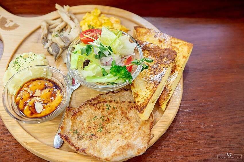 用料非常豐富的「早午盤餐」,只需要點一份就會讓人吃得很飽。餐盤上可以看見使用獨家醬汁醃製的溫體里肌肉、生菜沙拉、法式吐司、起司炒蛋、野菇、薯泥 (可選薯餅) 及黑糖優格,這樣一盤營養豐富的早午餐,相信各位絕對會有飽足感。但若食量比較大的朋友,可能需要再單點像是三明治、馬芬、捲餅…等等的小物才會覺得比較有飽足感。