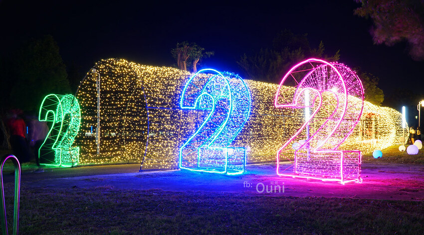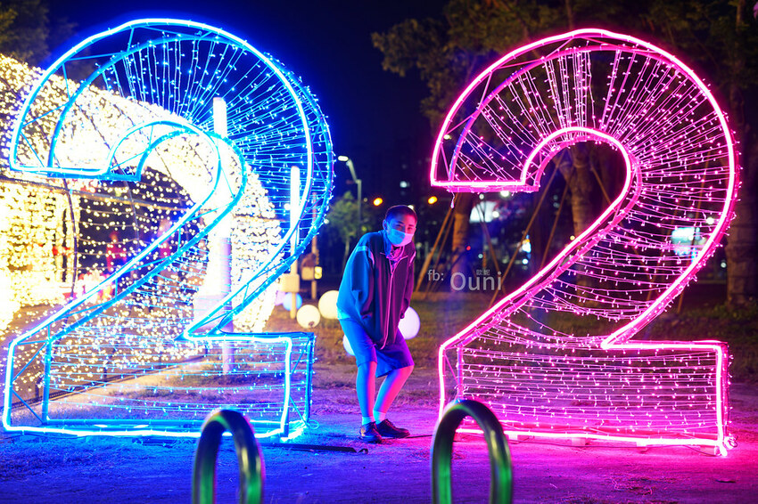 無論是身處在何種狀況下,是意氣風發諸事順遂,還是受到挫折鬱鬱寡歡,都會期待明年2022能夠有展新的開始。座落於中科路靠近大鵬路的「2022」年巨大字體,天色漸暗後由小燈泡集結成炫麗奪目的耶誕點燈景點,將平凡的夜空佈置成夢幻樂園。