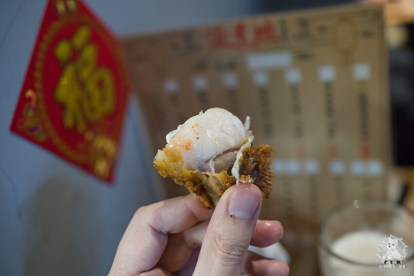 米腸裡面是偏軟的糯米帶點油蔥的香味,裡面沒有花生,外頭烤得酥酥脆脆,搭配店家的獨門醬料就很夠味。