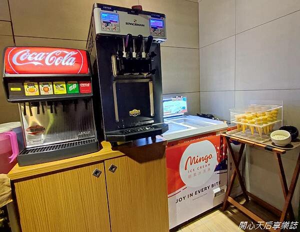 更有北海道牛奶風味、青蘋果風味的霜淇淋及泰國知名的Mingo 明果冰淇淋4種口味可以吃到撐,冰淇淋旁還有葡萄乾、小棉花糖可以加料喔!