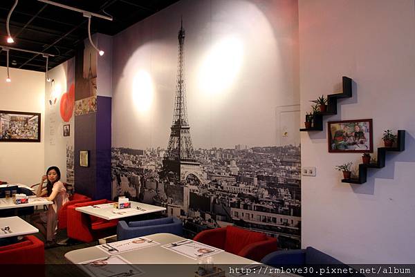 牆上有巴黎鐵塔的圖案,就像身處法國一般