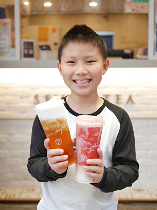 七盞茶| 粒粒香橙 $65、白玉珍奶紅 $50