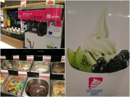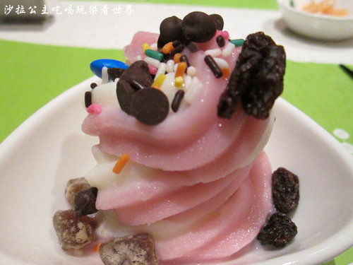 這裡沒有供應冰淇淋,只有優格霜淇淋,一旁還有配料可以加,吃飽飯之後果然匯有給問卷填其中一項就是今天的餐點中你最不滿意的是那三種食材