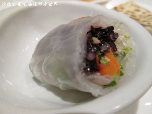 腸粉:裡面包的是蒟酪絲裝成的蝦仁,也是很有口感的