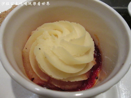 牧羊人派:這一球是馬鈴薯做的,下面是有點黑胡椒味的磨菇醬,其實不用沾下面的醬就很好吃了