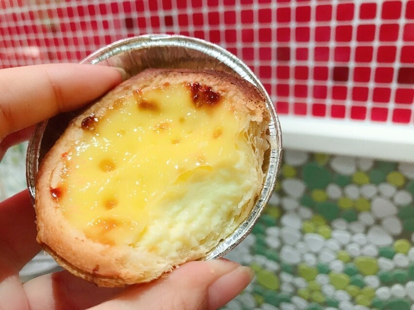 女王葡式蛋塔,一層一層的酥脆外皮是店家自行製作,吃起來相當香酥鬆脆,奶香十足
