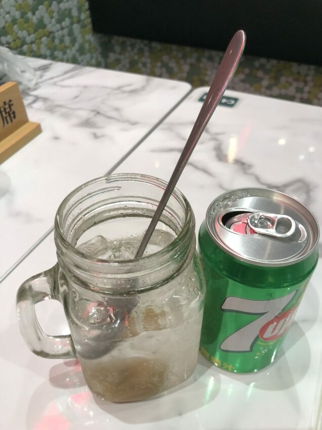 鹹檸七,清涼飲料消暑解膩,搭配一顆顆表皮有點微黃色的完整鹽檸檬,配上七喜汔水!! 讓我念念不忘