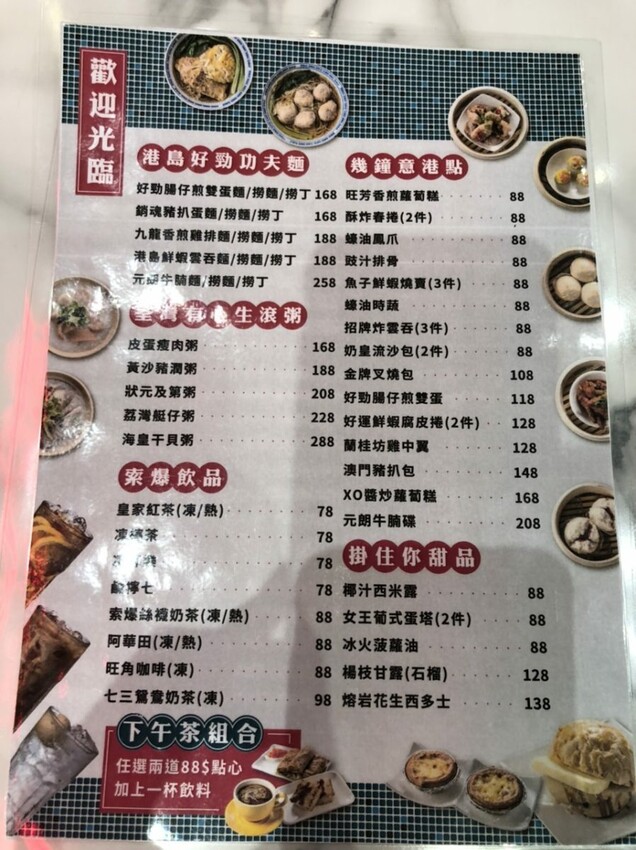 菜單品項眾多,除港式必點招牌撈麵、港點外,還有很多選擇,如粥品