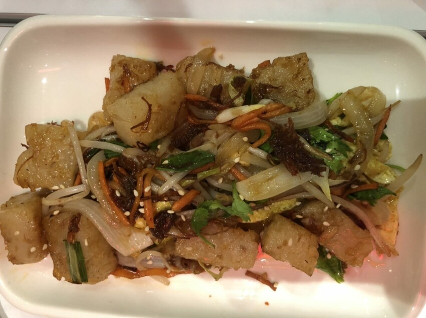 XO醬炒蘿蔔糕,不同於台式蘿蔔糕的外脆內軟,港式的軟嫩不油膩,小塊好食,搭配豆芽菜,相較於一般的香煎蘿蔔糕,多了一分微辣的口感,滋味滿滿