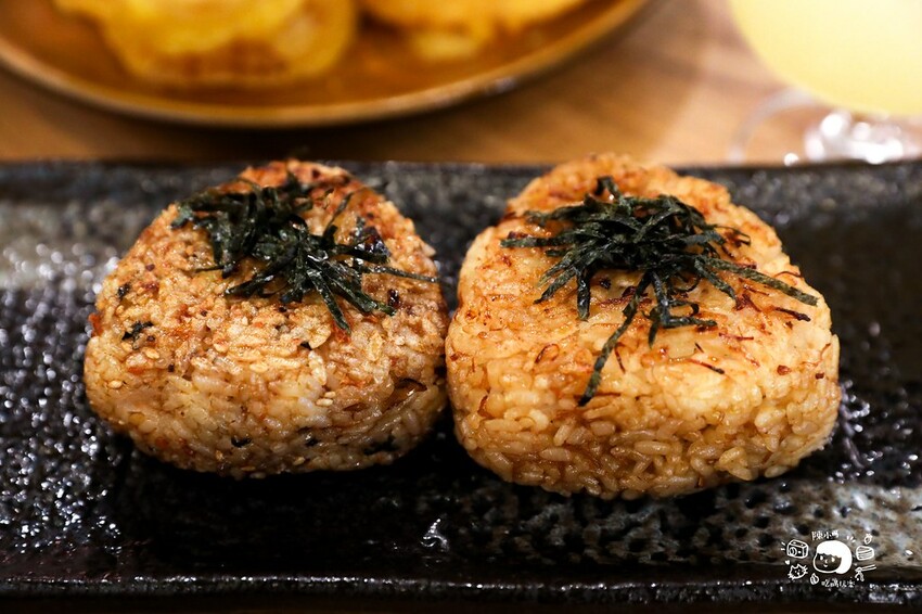 塗上醬汁經過火烤之後,容燒居酒屋的烤飯糰,表面烤得酥脆,口感有點像在吃鍋巴,咬開之後,裡面瞬間轉為Q軟充滿鹹香的米飯,不管是包鮭魚或干貝都很好吃。