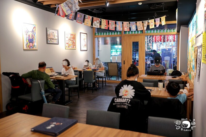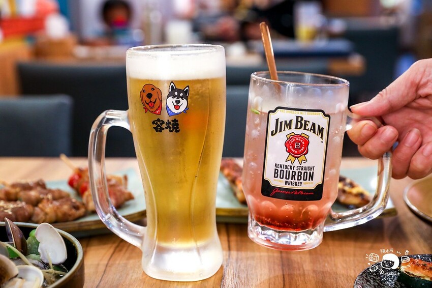 容燒居酒屋可愛的看板,上面是兩隻狗狗拿著啤酒跟串燒,一進門就看到這顯眼的裝置,好吸睛啊!這也是IG很多人拍照打卡的背景。