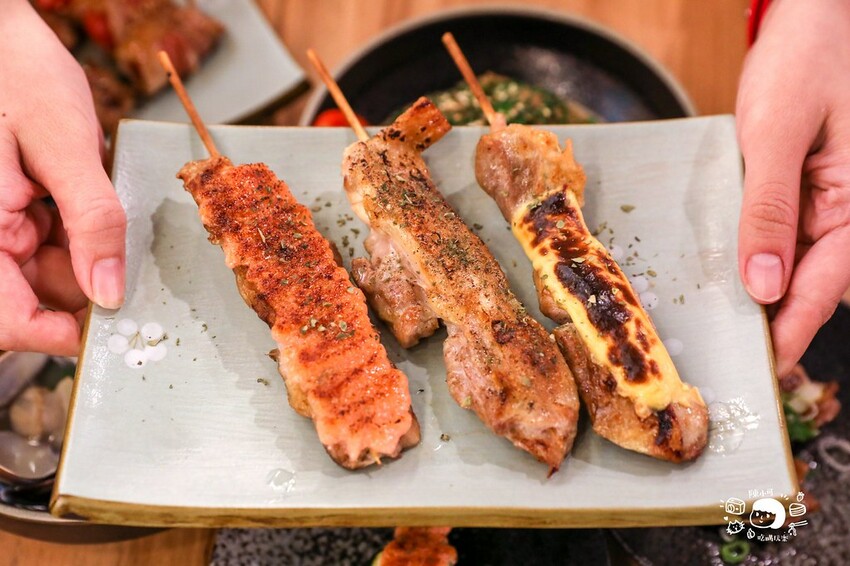 培根麻吉串($50)/青蔥豬肉串($45)/豬肉番茄串($50)