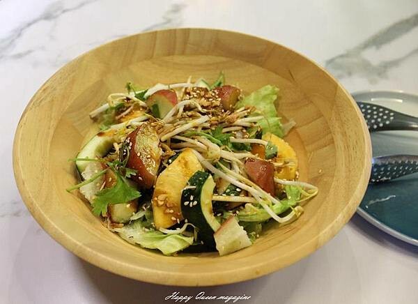 娘惹沙拉380,含有多種新鮮蔬果~豆芽菜、鳯梨、蓮霧等,搭配自製的娘惹沙拉醬,吃起來好鮮甜,多口味感受的清爽沙拉,讓人一口接一口,好涮嘴!