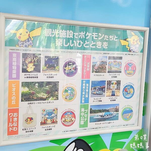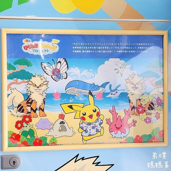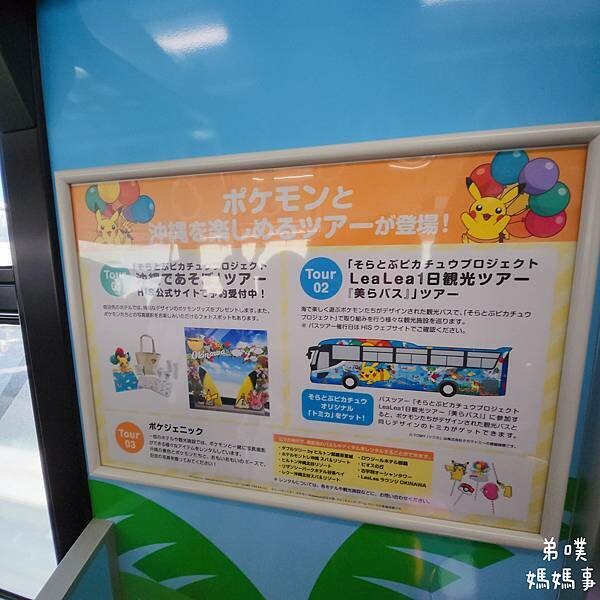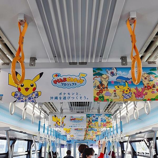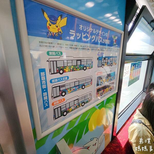 車廂上還有介紹沖繩各個能夠看到「飛翔皮卡丘計畫」的公車,弟噗媽只有匆匆一撇瞄到