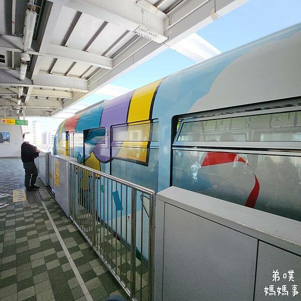 電車外觀很多種,除了寶可夢列車外,弟噗媽最愛就是自己戲稱圓圓鰻(花園鰻)外型的車廂,單軌電車圓弧造型和圓圓鰻實在有夠搭!