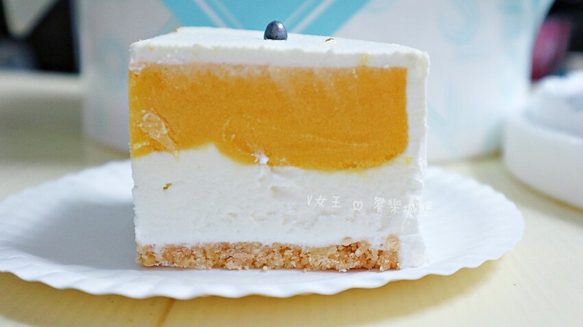 將蛋糕切開後,那淡淡的芒果味就飛奔出來,讓人誤以為切的是芒果而不是