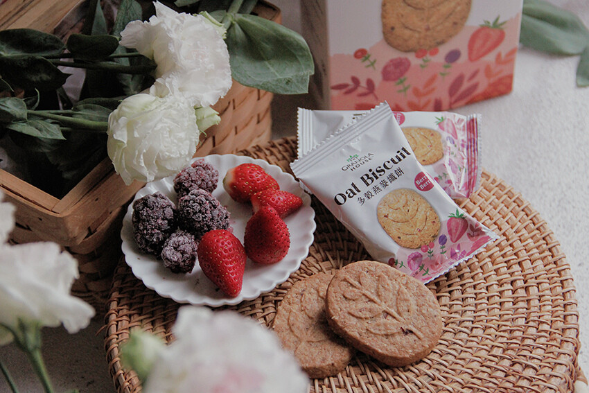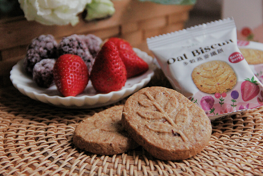 嚐到嘴裡,能咬到蔓越莓像蜜餞果乾的微酸輕甜,莓果香氣豐富,提升燕麥纖餅滋味上的新感受!