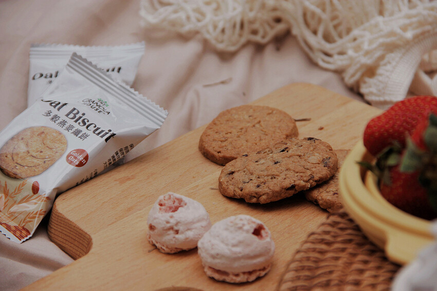 融合多種穀物的燕麥纖餅還有滿滿的膳食纖維,也能增加飽足感~沒添加蛋奶素是素食的朋友也可以補充的營養餅乾!