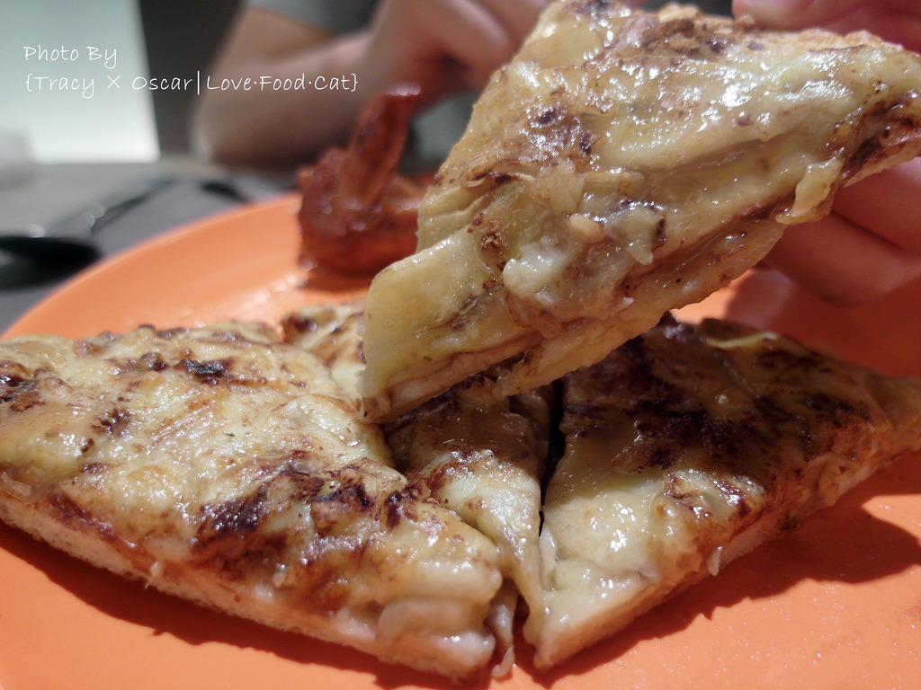 ▲焦糖香蕉比薩,因為他們比薩一顆是九吋,所以服務生建議單口味做半顆就可以了,