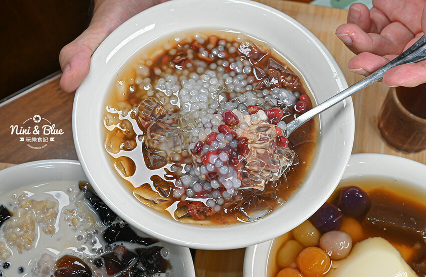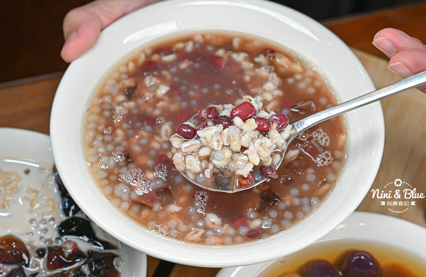 裡面有紅豆、小薏仁、蒟蒻、西米露,整碗滿滿配料吃完也很有飽足感呀!
