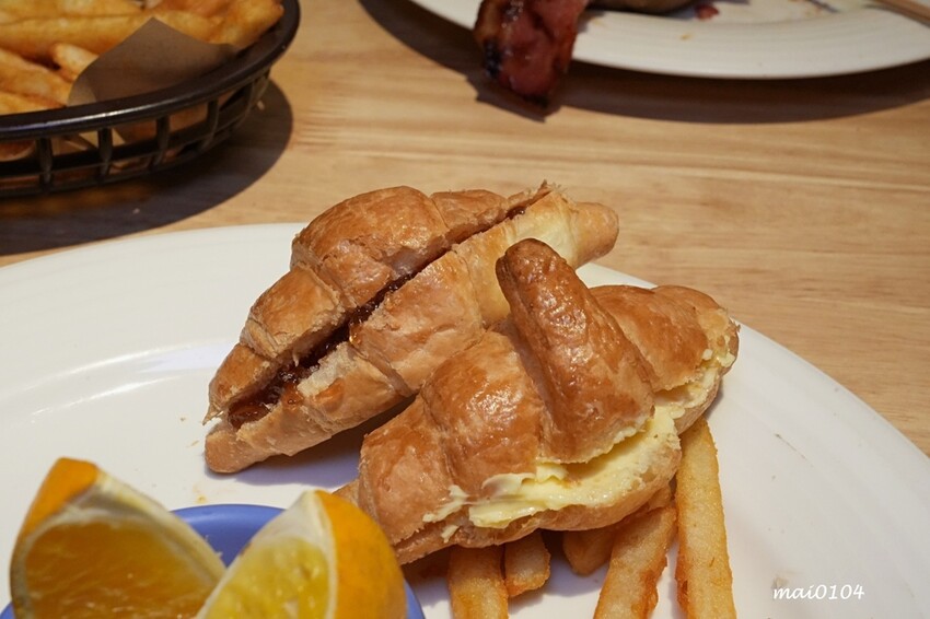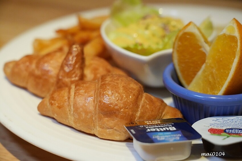 麵包有可頌、火烤土司、香料麵包可以選擇