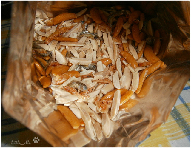 酥脆的櫻花蝦和小魚干(那小魚乾好大隻唷!) 酥脆的口感讓人一口接著一口停不下來