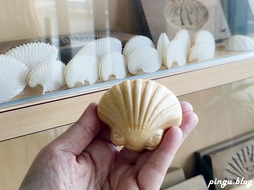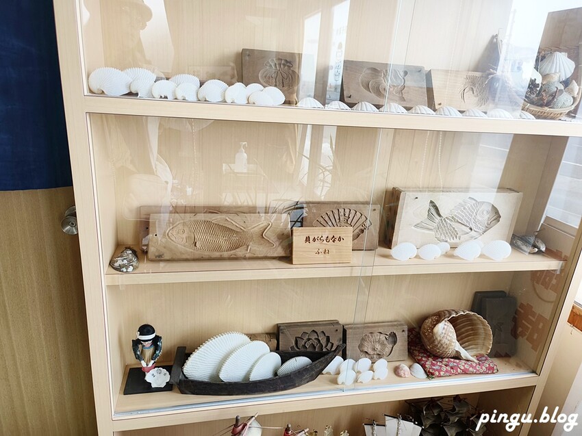 玻璃櫃內是以前所使用的模具,後來都是以貝殼形狀為主