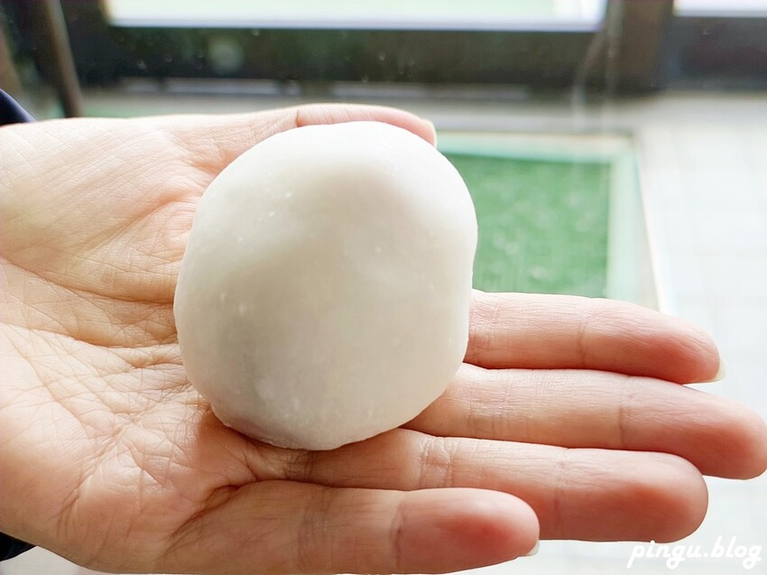 這一顆草莓大福吃下去大概就飽了~~超大顆的草莓包在大福裡,草莓吃起來多汁脆口,還不錯吃!! 草莓大福要10點過後才開賣,早來或晚來很容易吃不到唷~