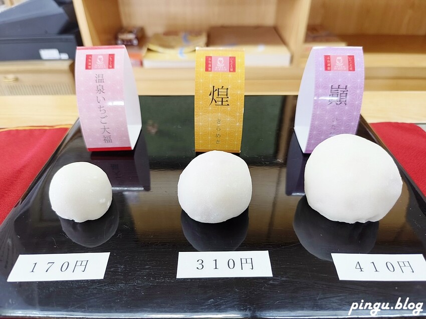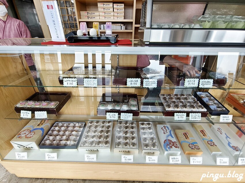 日本伴手禮就是要和菓子,超過50年的貝がらもなか位於濱村溫泉鎮附近,貝殼造型的最中餅超可愛,內餡是滿滿的紅豆泥,還有溫泉草莓大福也是必吃的甜點!!老闆娘嫁給台灣人會說中文,所以溝通完全沒問題,在地人都會來買的伴手禮唷!!