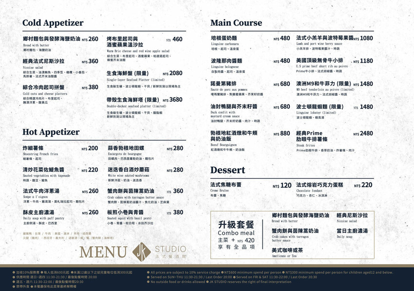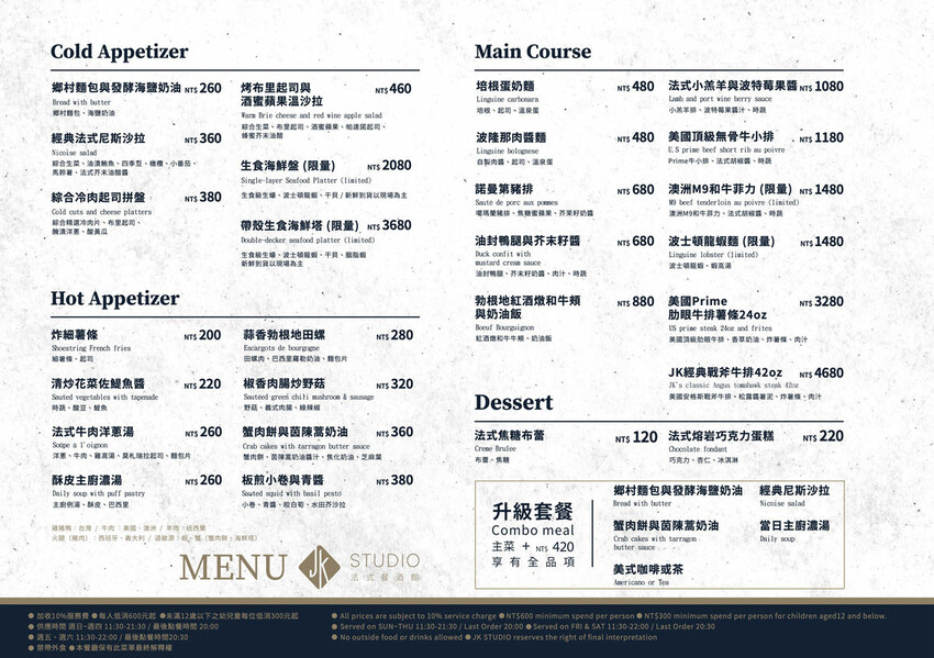 備註:文章皆有時效性,如有修正皆以JK STUDIO法式餐酒館為主