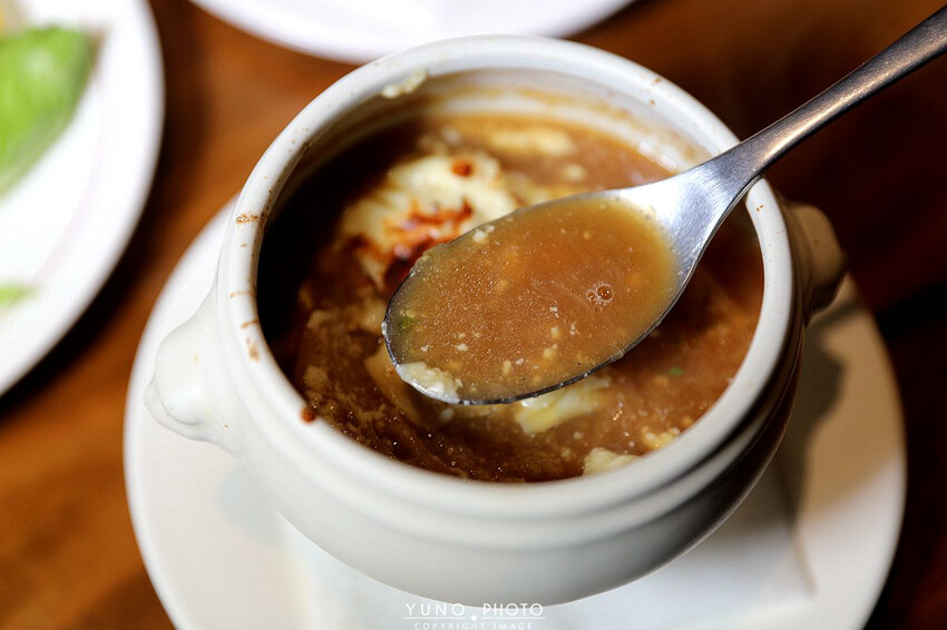 湯底由洋蔥、牛肉湯等熬製而成通過長時間慢煮 釋放出洋蔥的天然甜味