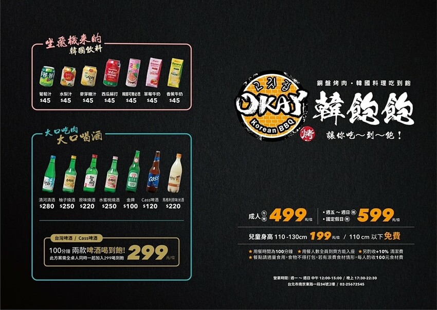 ▲▼中山區韓式吃到飽OKAY 韓國烤肉:菜單