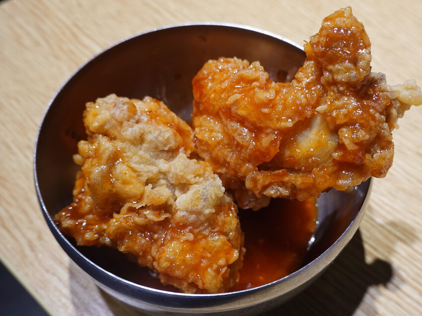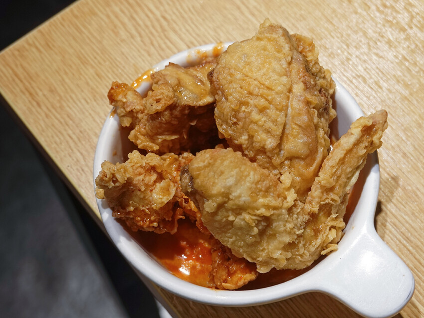 「OKAY 韓國烤肉」的韓式炸雞令人驚艷,能同時嚐到原味、洋釀、蜂蜜三種口味,還提供「半半」選擇,超貼心。炸雞是現炸的,酥脆外皮下包裹著多汁的雞肉,一口咬下熱氣四溢。