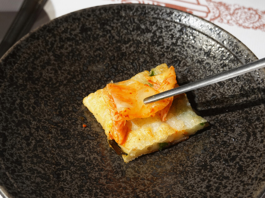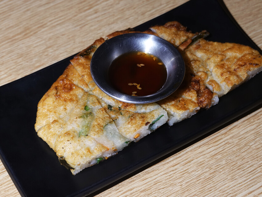 到韓式餐廳,海鮮煎餅必點!這裡的煎餅外酥內Q,完全不油膩,甚至比許多專門的韓式餐廳更好吃,搭配特調醬汁,一口接一口停不下來。