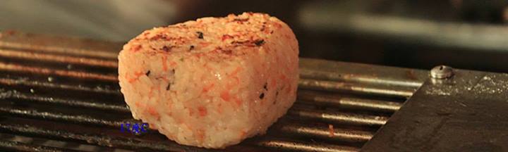 好啦!熱騰騰,發燙的烤飯團來了。