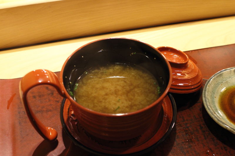 味噌湯有股清香,似乎是蕈菇類的香氣?口味則是清淡清爽的很,單純的湯汁而無其他食材。